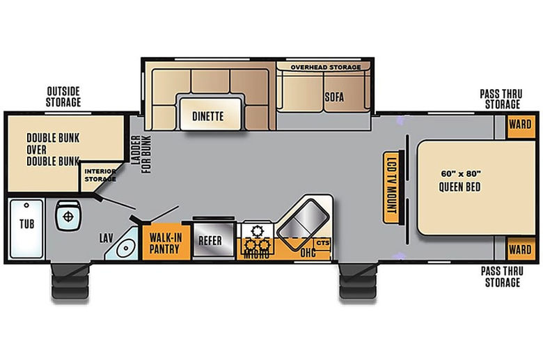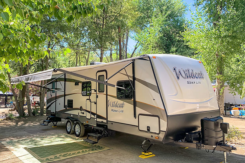 The 2018 Wildcat has so much to offer! A private Queen bedroom in the front, both a couch and dinette that convert, and over-sized bunks in the back. The bathroom is accessible from both inside and outside entry, making enjoying the outdoor living a little easier. There's a electric awning with LED lights and outdoor speakers. Accommodates 8 people (Bunks do have factory set weight limits, so that should be considered when planning sleeping arrangements)